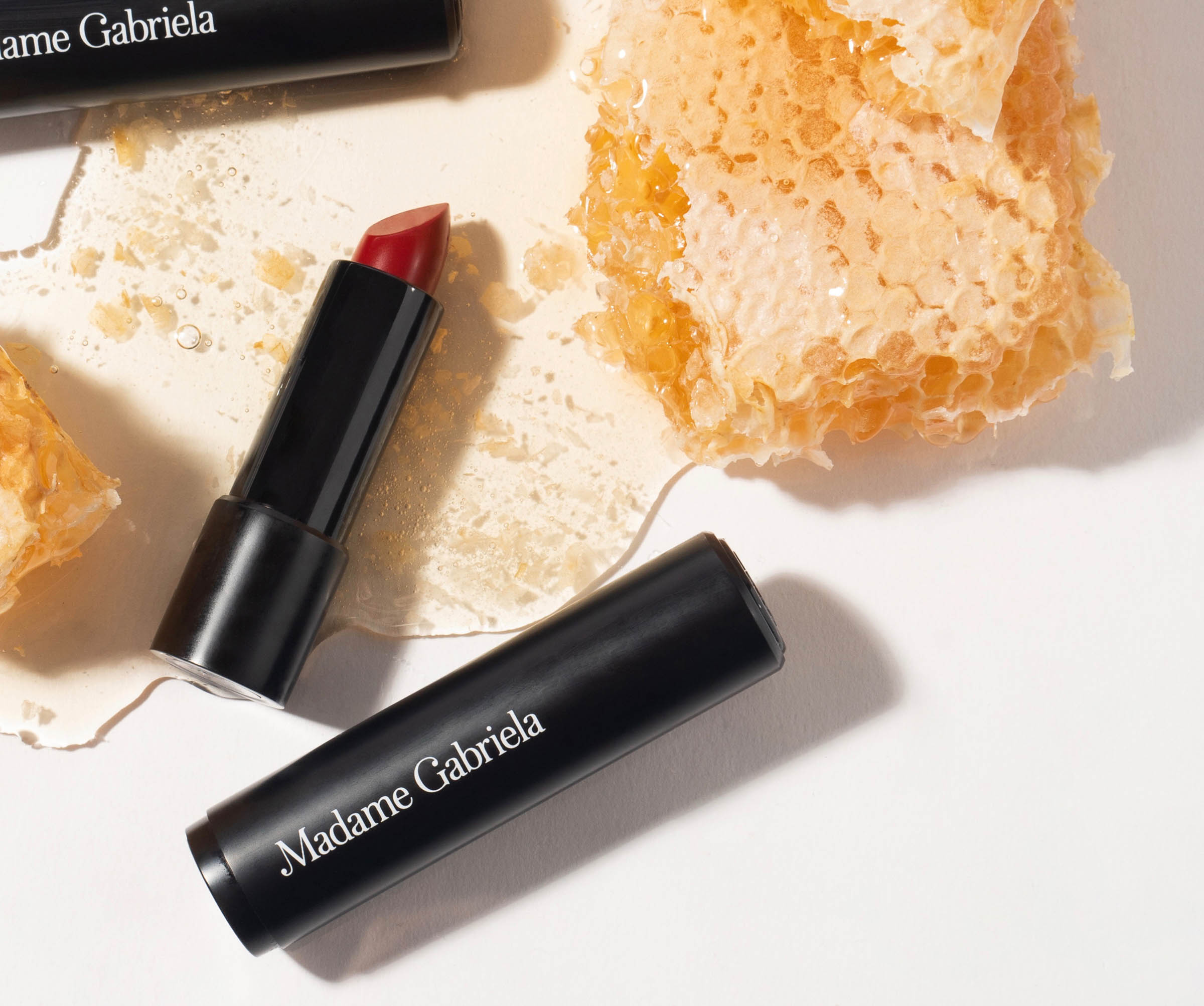 Gabriela Navejas, the co-founder of Madame Gabriela Beauty, grew up watching her Abuela, Esther, apply beautiful shades to complete her look. Seeing a gap in the market Gabriela set about to create an opulent clean beauty lipstick. A visit to Herboristerie de la Place Clichy in Paris would unfold into a two year worldwide search. The result? Discovering the beauty of Manuka Honey and ingredients that are now at the heart of the brand.